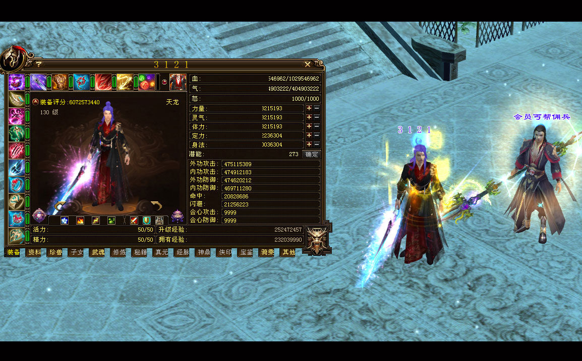 [天龙]裸满调法:力量:318万 灵力:318万 体力:318万 定力:220万 身法:20.4亿